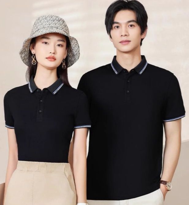 襟と袖口のラインがスタイリッシュなアクセントとなり、ゴルフシーンでの上品な着こなしを演出します。